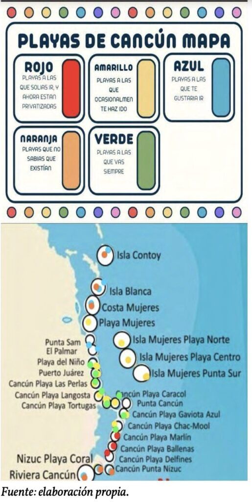 Los resultados señalan que de las 14 playas públicas contempladas originalmente en el Plan Maestro de Cancún, únicamente tres mantienen condiciones adecuadas de libre acceso. Además, el estudio advierte que la privatización no se limita a barreras físicas, sino que también incluye mecanismos simbólicos, como la vigilancia y control del espacio orientados a preservar una imagen de exclusividad para el turismo.