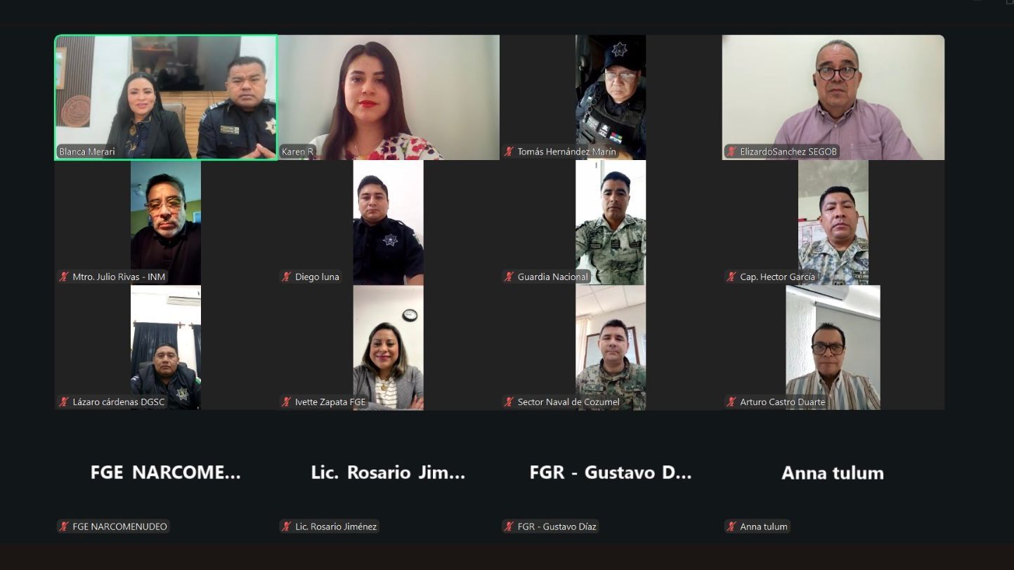 La alcaldesa de Puerto Morelos, Blanca Merari Tziu Muñoz, participó este día, vía Zoom, en la Mesa de Coordinación para la Construcción de Paz, espacio de análisis y seguimiento de las acciones en materia de seguridad pública que se desarrollan de manera conjunta entre los tres órdenes de gobierno.