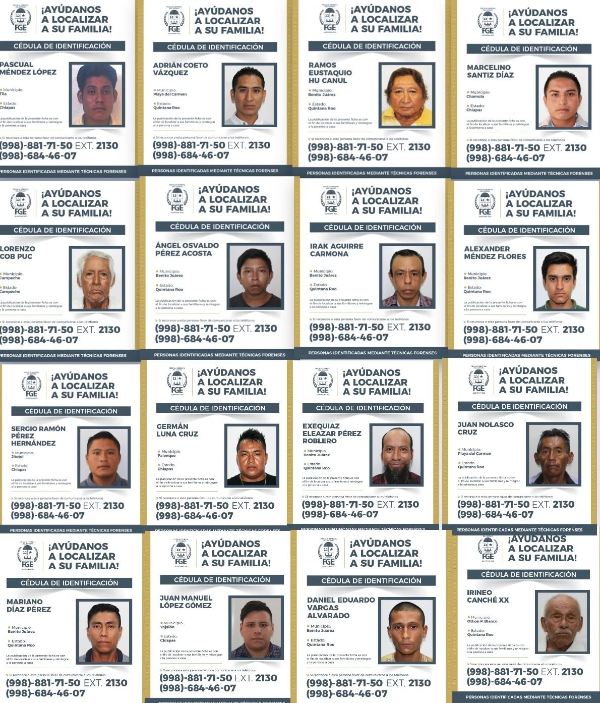 La Fiscalía puso a disposición de la ciudadanía los números telefónicos 998 881 71 50 extensión 2130 y 998 684 46 07, para brindar orientación y atención a quienes consideren haber reconocido a alguna de las personas incluidas en estas listas.