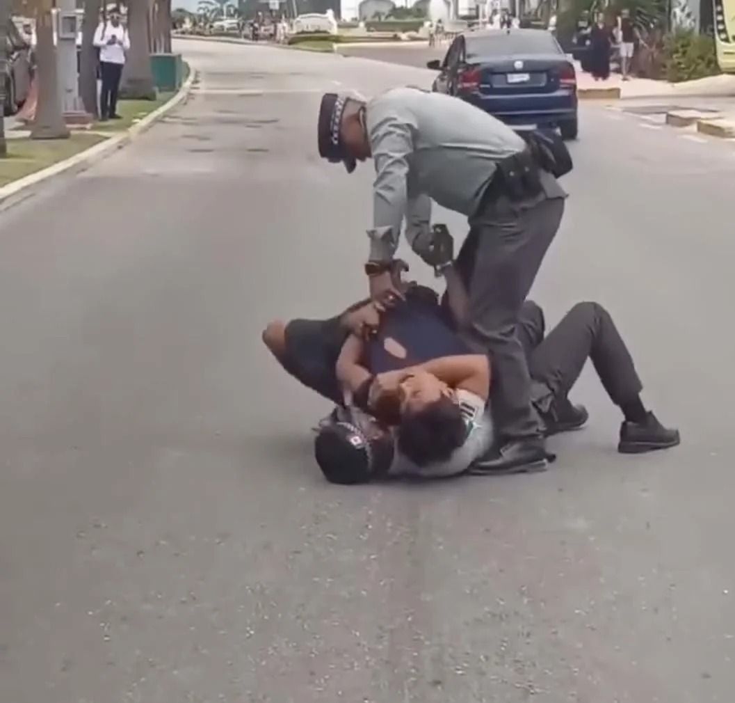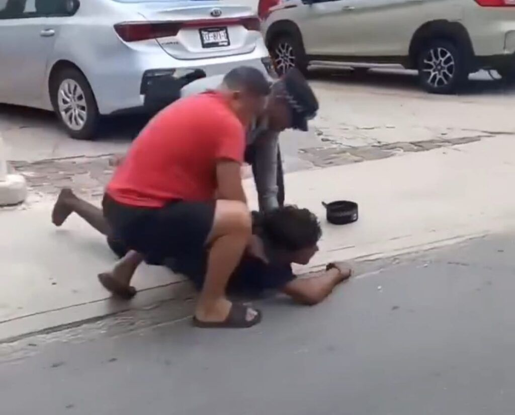 Un sujeto, de identidad desconocida, se enfrentó la mañana de este martes a dos elementos de la Guardia Nacional, en un incidente que provocó afectaciones a la circulación vehicular y evidenció la falta de preparación de los agentes, al grado de requerir la intervención de un civil para lograr la detención, en plena Zona Hotelera de Cancún.