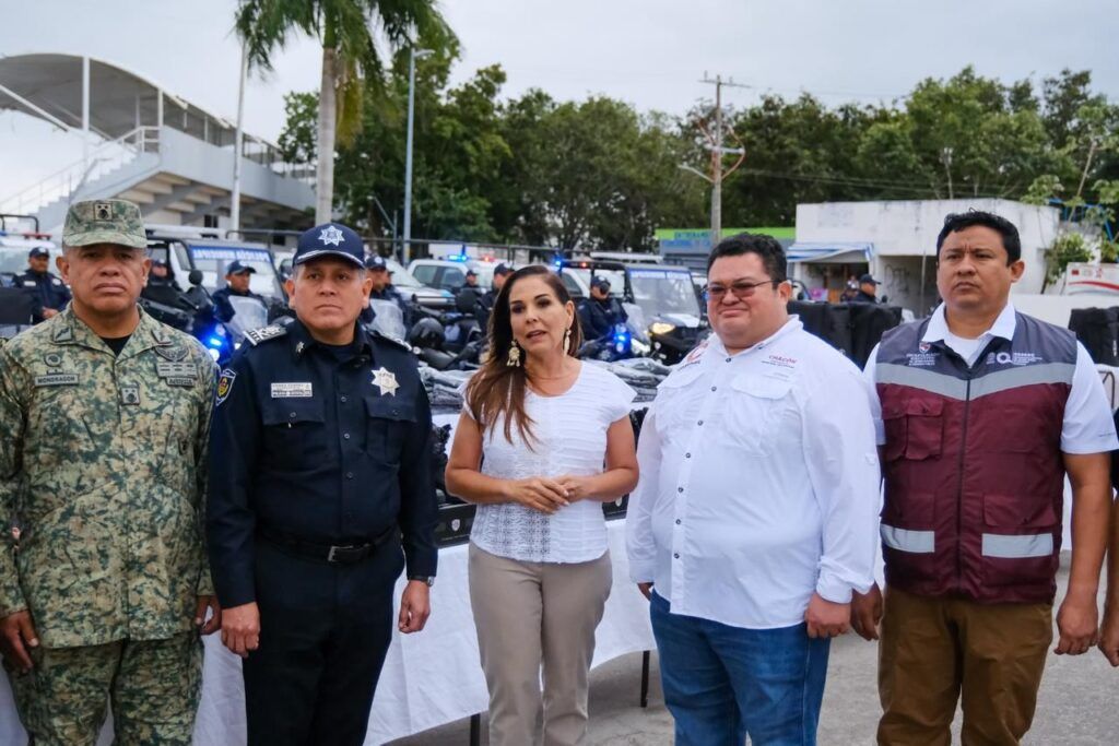 Durante el evento y acompañada del presidente municipal José Luis Chacón Méndez, Mara Lezama destacó que a través del Fideicomiso para el Bienestar del Turismo Crucerista, se realizó una inversión superior a los 24.5 millones de pesos para la renovación y fortalecimiento del parque vehicular, lo que permitirá mejorar la capacidad operativa y de respuesta de las corporaciones de seguridad.