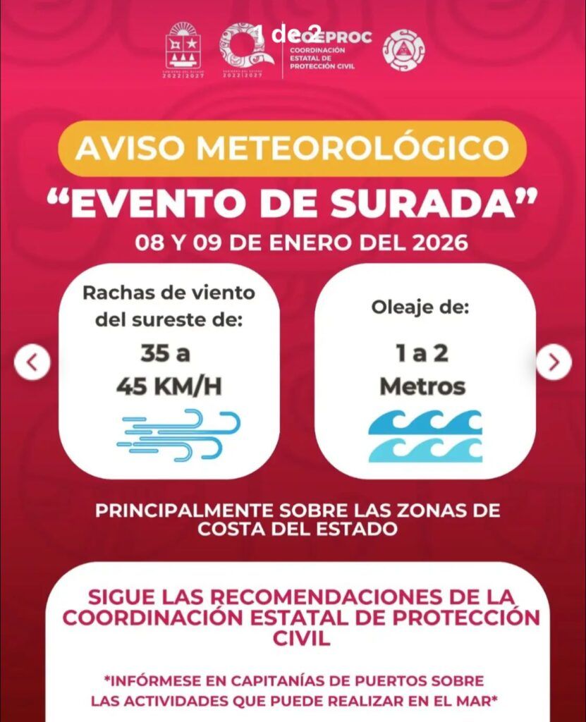 Al respecto, la secretaria de Medio Ambiente Sustentable y Cambio Climático, Samantha Álvarez Hernández, explicó que a diferencia de los vientos del norte, que suelen ayudar a alejar el material acumulado en la franja costera, la surada provoca que tanto el sargazo como una gran cantidad de basura marina lleguen a las playas, afectando su imagen y condiciones ambientales.