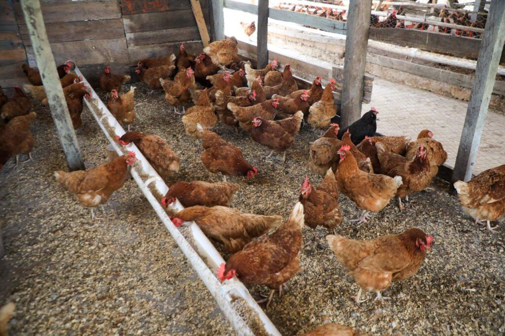 Durante la visita al Rancho Las Perlas, su propietario, Janeiro Izquierdo, explicó que el sitio cuenta con más de una década de operación y una producción de 1,500 gallinas de doble propósito, con una generación de hasta 360 huevos diarios, además de una producción porcina de 60 animales al mes.