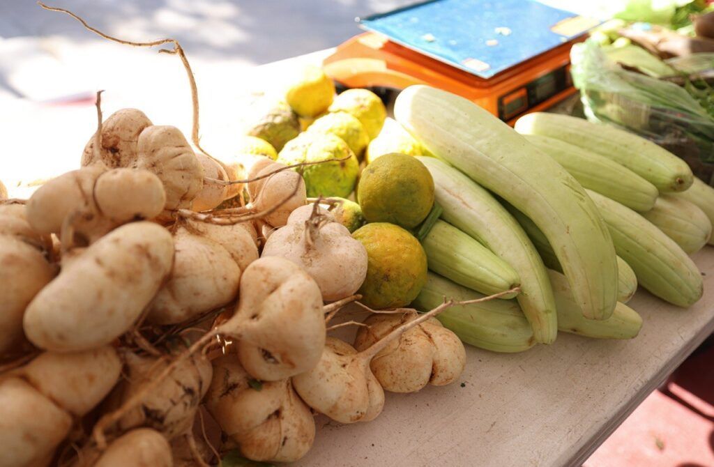 Durante esta jornada, las y los asistentes pudieron adquirir una amplia variedad de productos como coco, huevo, plantas de ornato, sandía, papaya, limón, rábano, miel y especias, sumándose en esta ocasión la venta de pescado, lo que diversificó la oferta para beneficio de la ciudadanía.