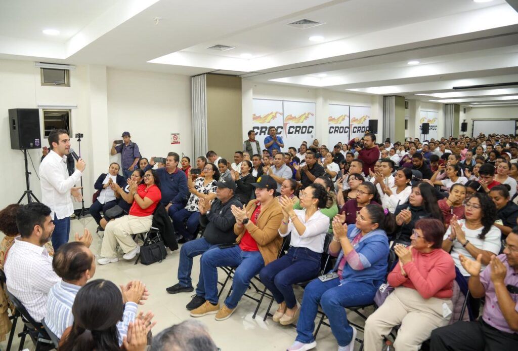 Ante las y los trabajadores de la CROC, encabezados por el secretario general en el estado, Martín de la Cruz Gómez, el legislador sostuvo una reunión informativa la tarde-noche de este lunes en el edificio sindical de esta ciudad.