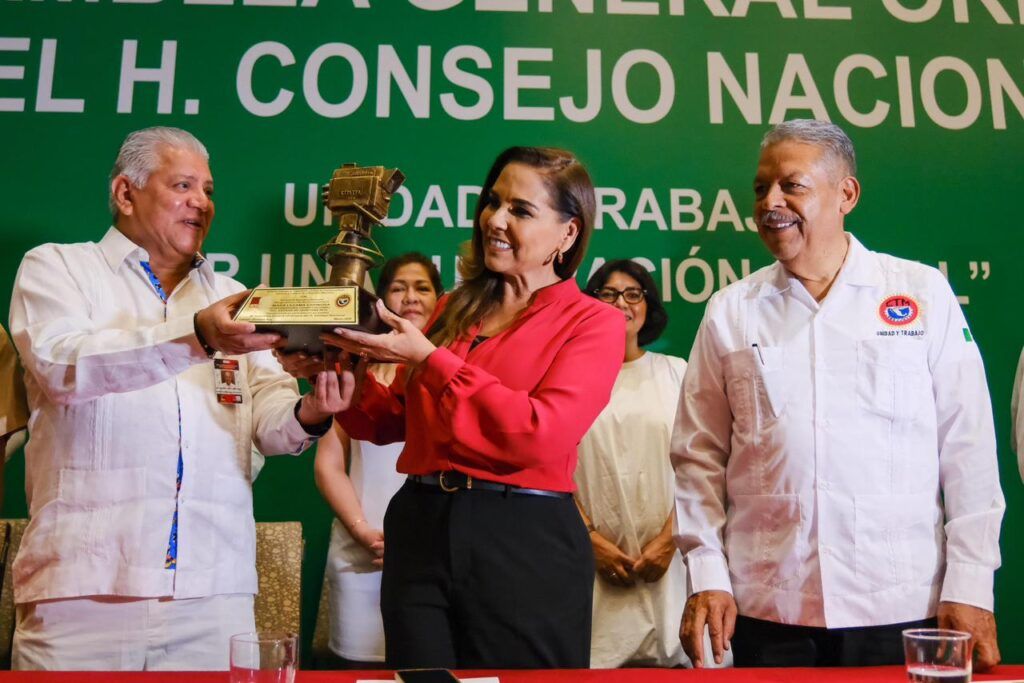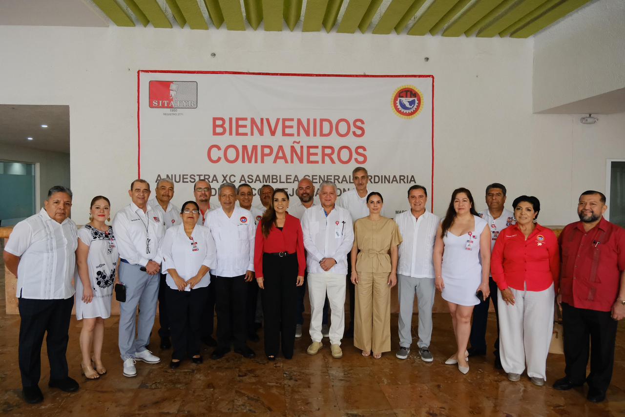 Durante la ceremonia de apertura de esta Asamblea General, en la que estuvo presente el secretario general de la Confederación de Trabajadores de México (CTM) Tereso Medina Ramírez, el titular del SITATYR, Ernesto Arellano Pérez reconoció públicamente la labor que ha desarrollado la gobernadora Mara Lezama para el bienestar y la prosperidad compartida de las y los quintanarroenses.
