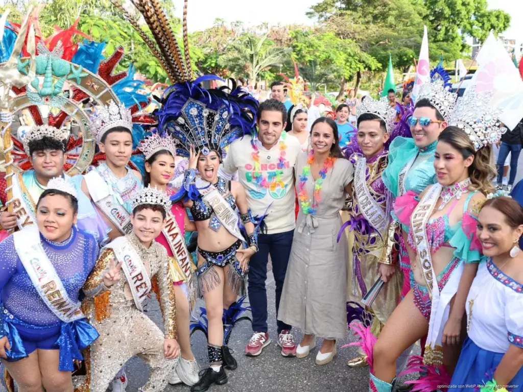 - La alcaldesa Ana Paty Peralta, acompañada del senador Eugenio Segura, convivió con los integrantes de los nueve bloques del desfile, de los cuales seis lo conformaron habitantes de diferentes sectores de la sociedad que han visto el crecimiento de este destino turístico