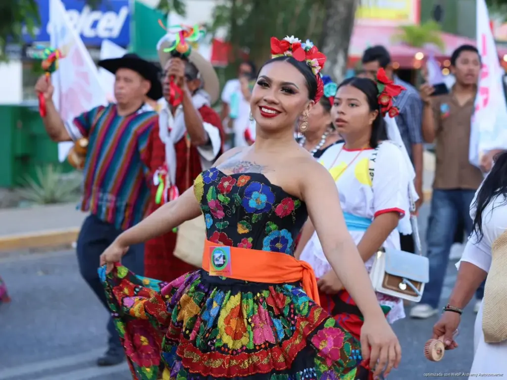 En un ambiente de fiesta, algarabía y sano esparcimiento, la presidenta municipal, Ana Paty Peralta, participó en el “Desfile Cancunense” y la convivencia en el “Show Cancunense”, que reunió a más de 7 mil personas de diferentes sectores y gremios en las calles del primer cuadro de la ciudad y los alrededores del Palacio Municipal, para conmemorar los 56 años de haber sido fundado Cancún como ciudad y destino turístico multicultural.