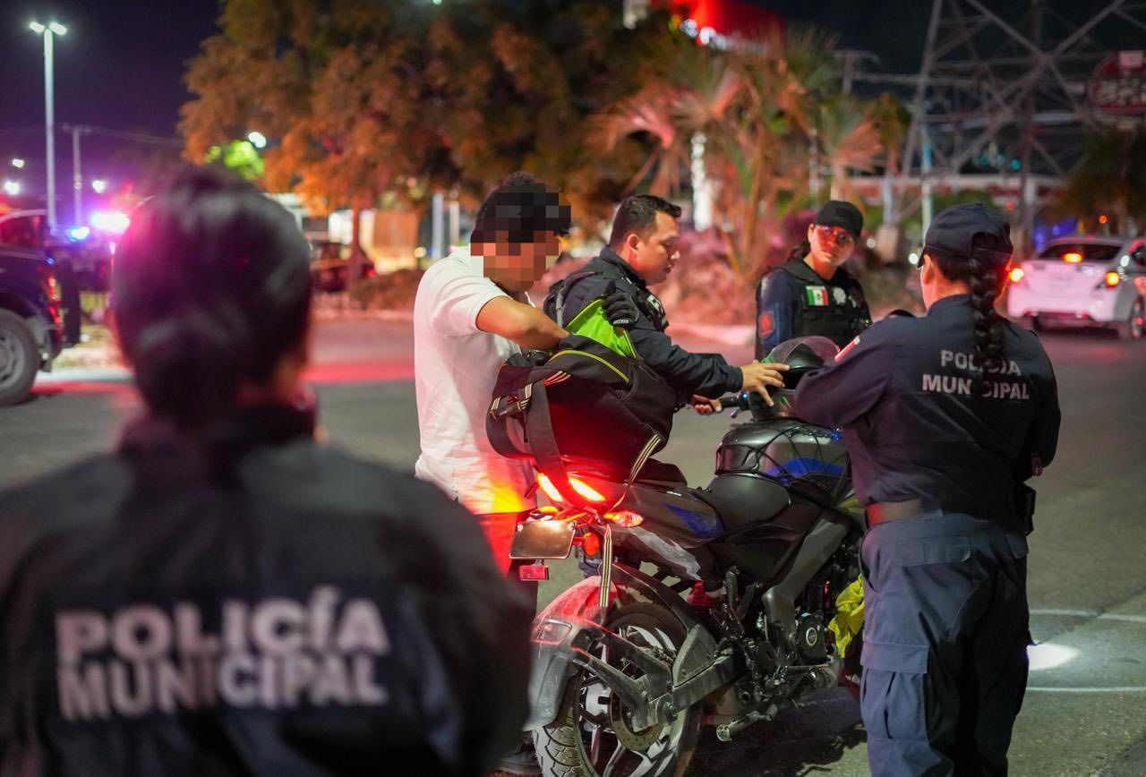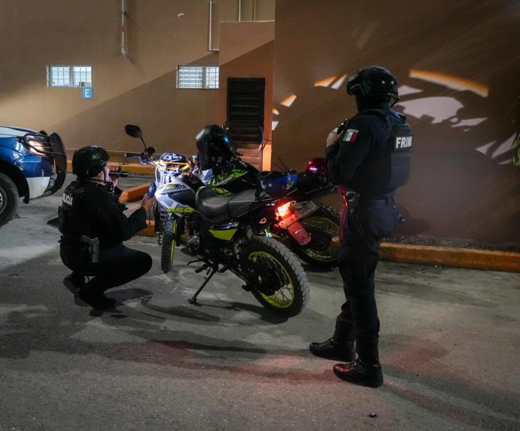 Un operativo implementado tras reportes ciudadanos por arrancones clandestinos en una plaza comercial de Cancún dejó al descubierto un escenario que iba más allá de simples competencias ilegales: motocicletas robadas, personas detenidas y el aseguramiento de réplicas de armas de fuego.