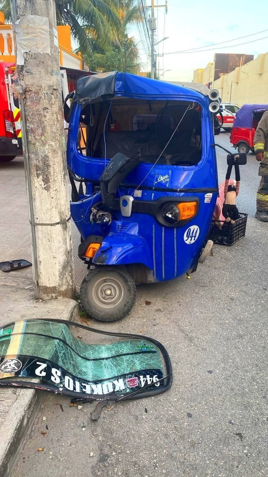 El accidente ocurrió sobre la calle 61 con 82, cuando el operador de la unidad —perteneciente al sindicato Isla Cun, con número económico 944— perdió el control del manubrio y se estrelló contra una estructura de la Comisión Federal de Electricidad (CFE). Versiones preliminares indican que el mototaxi circulaba a exceso de velocidad y presuntamente intentó esquivar a otro vehículo que habría invadido su carril, maniobra que terminó en el impacto.