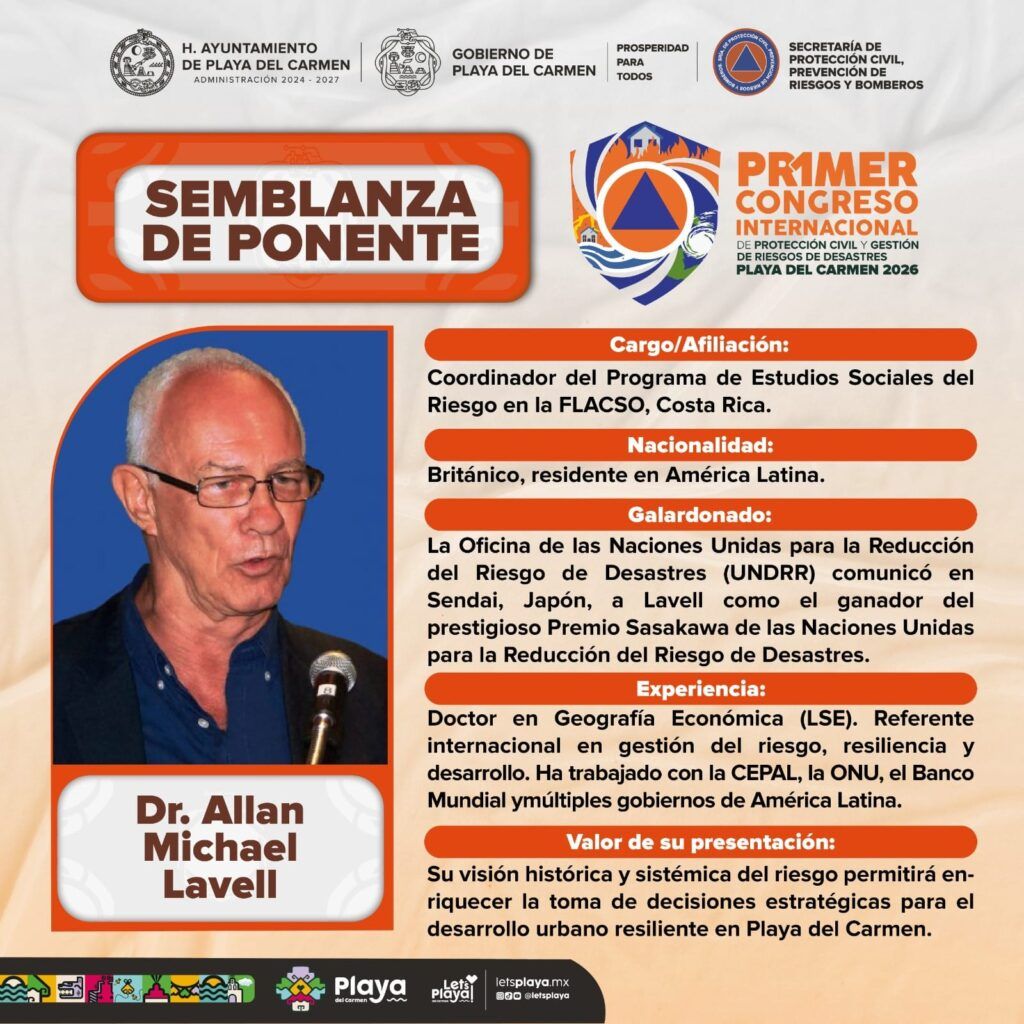 Como parte del Primer Congreso Internacional de Protección Civil y Gestión de Riesgos de Desastres 2026, Playa del Carmen presenta a las y los 11 ponentes nacionales e internacionales que participarán en este encuentro, a realizarse del 25 al 27 de febrero.