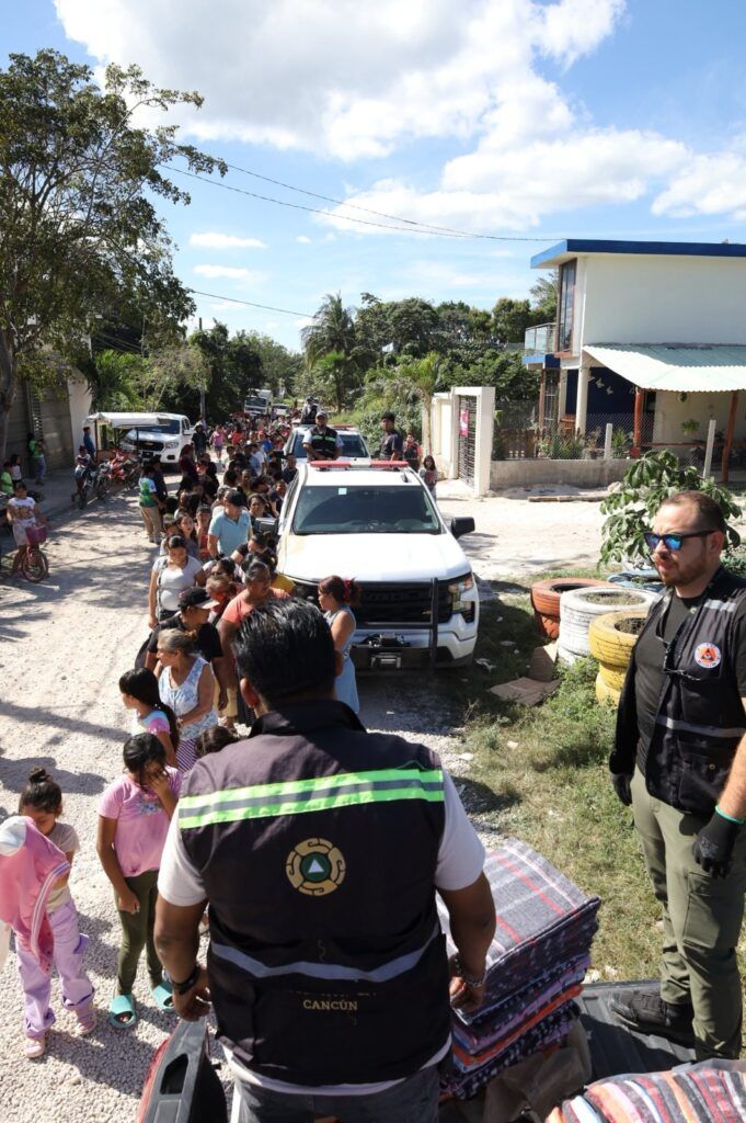 Como parte de las acciones preventivas, personal de Protección Civil ha recorrido distintas colonias para entregar cobertores a familias cancunenses, con especial atención a niñas, niños y personas adultas mayores, considerados los grupos más vulnerables ante las bajas temperaturas.