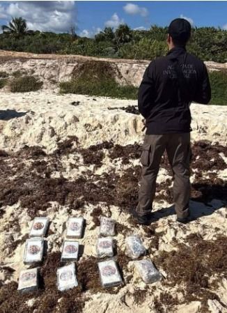 Autoridades federales aseguraron 11 kilogramos de presunta cocaína que arribaron a la costa tras ser arrastrados por la marea hacia una zona turística del sur de Playa del Carmen.