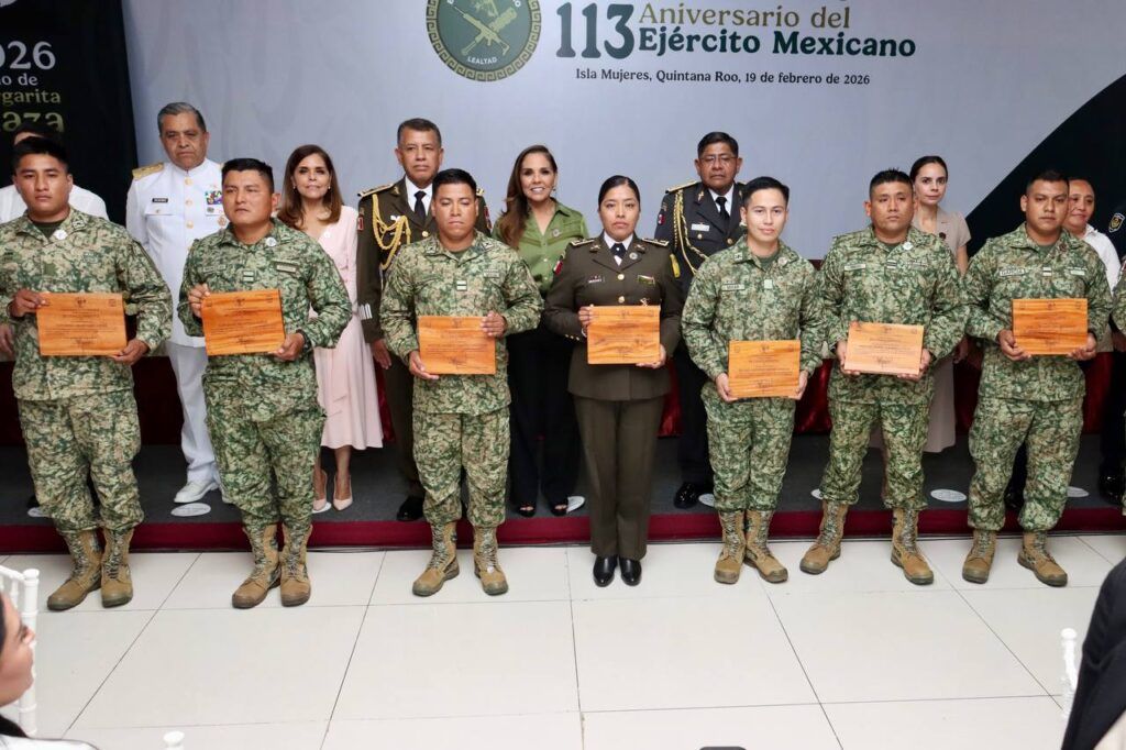 “En Quintana Roo esta institución tiene un significado especial al ser nuestro estado frontera, destinos turísticos, somos el Estado que le abre la puerta al mundo y ahí está el Ejército cuidándonos y resguardándonos. Hoy el Tren Maya, el aeropuerto de Tulum, hoteles, son hechos por ingenieros militares convirtiéndose en parte esencial de la transformación del país”, apuntó la gobernadora.