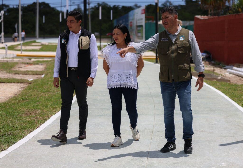 Durante la visita al área ubicada detrás de la plaza conocida como “Super Aki”, entre la Carretera Federal 307 y la avenida Joaquín Zetina Gasca, la primera autoridad municipal subrayó la importancia de esta obra —que se encuentra prácticamente lista para su inauguración— como parte del impulso a un desarrollo urbano ordenado, incluyente y orientado al bienestar social.
