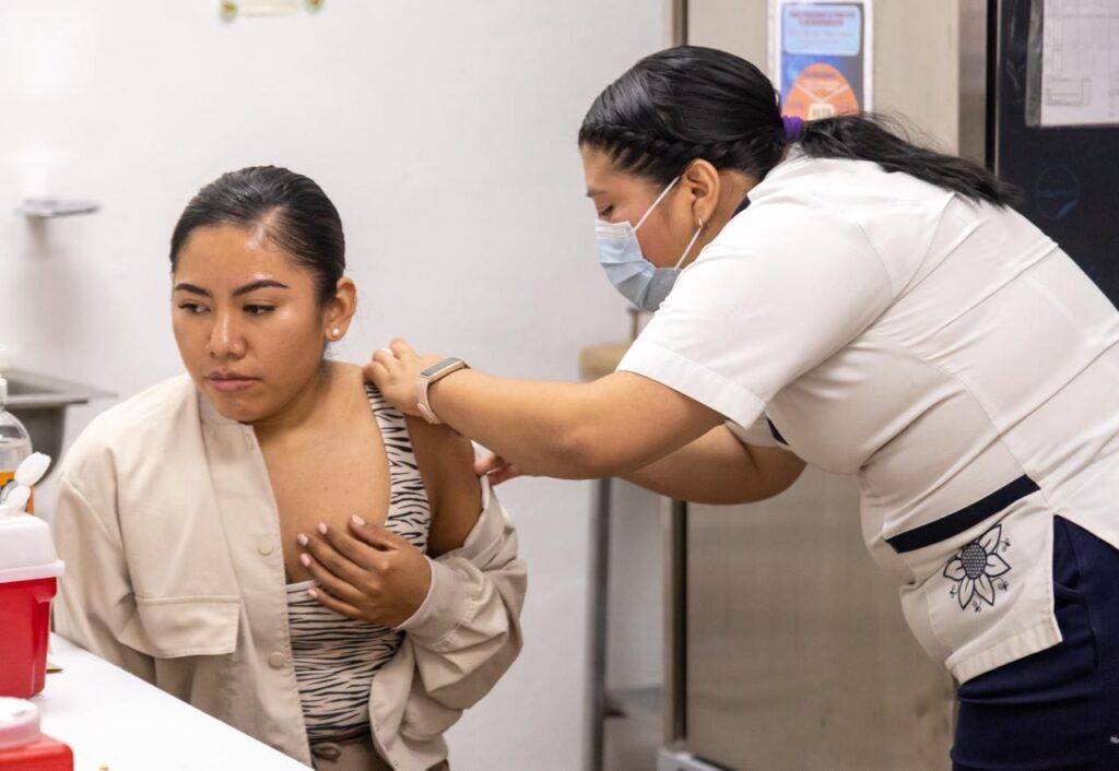 Previamente, la presidenta municipal visitó el Centro de Salud de la localidad en compañía del alcalde y el secretario de Salud, José Antonio Uribe, donde se llevó a cabo una jornada de vacunación contra el sarampión como parte de las acciones preventivas a favor de la salud pública.