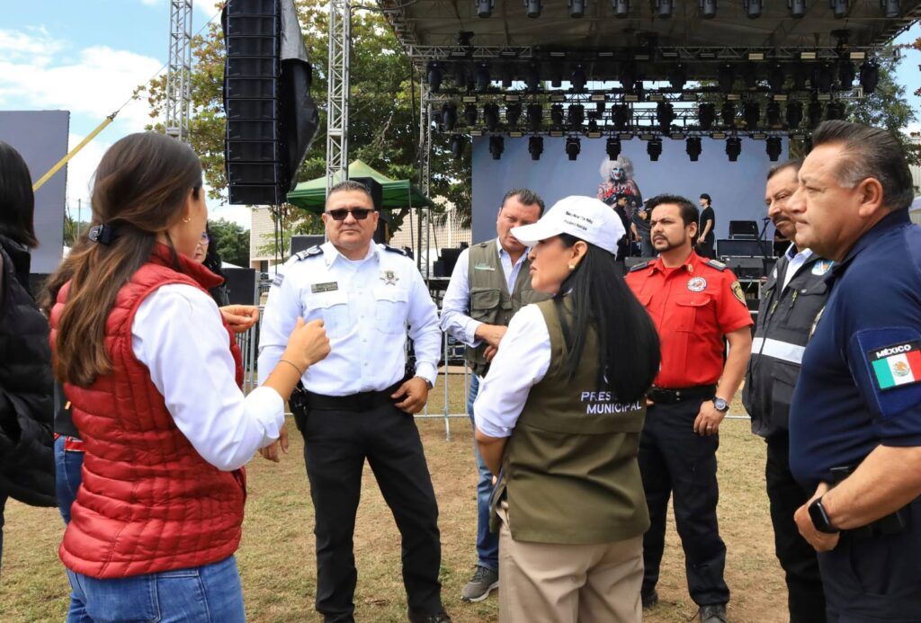 - La presidenta municipal recorrió y supervisó el Campo de Beisbol de la colonia Pescadores sede de esta gran fiesta junto con funcionarios de Cultura, Protección Civil, Fiscalización y Seguridad Ciudadana, garantizando el buen desarrollo del evento que recibe a artistas de talla internacional como “Los Ángeles Azules” y que es totalmente gratis