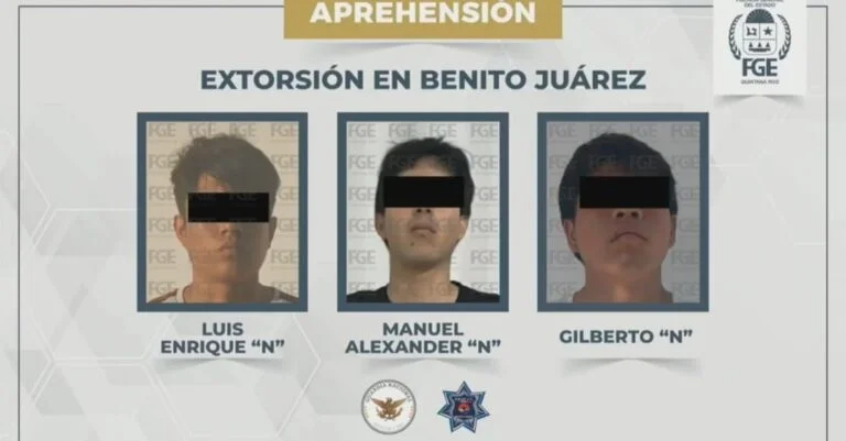 Las primeras investigaciones señalan que los ahora imputados se apersonaron en la tienda de abarrotes ubicada en la Supermanzana 105 del fraccionamiento Tierra Maya, y se dirigieron al encargado, informándole que le llevaban “un regalito”, el cual consistía en una caja, que contenía una nota en la que le exigían pagar la cantidad 10 mil pesos y contestar las llamadas que le harían, advirtiéndole que los estaban vigilando.