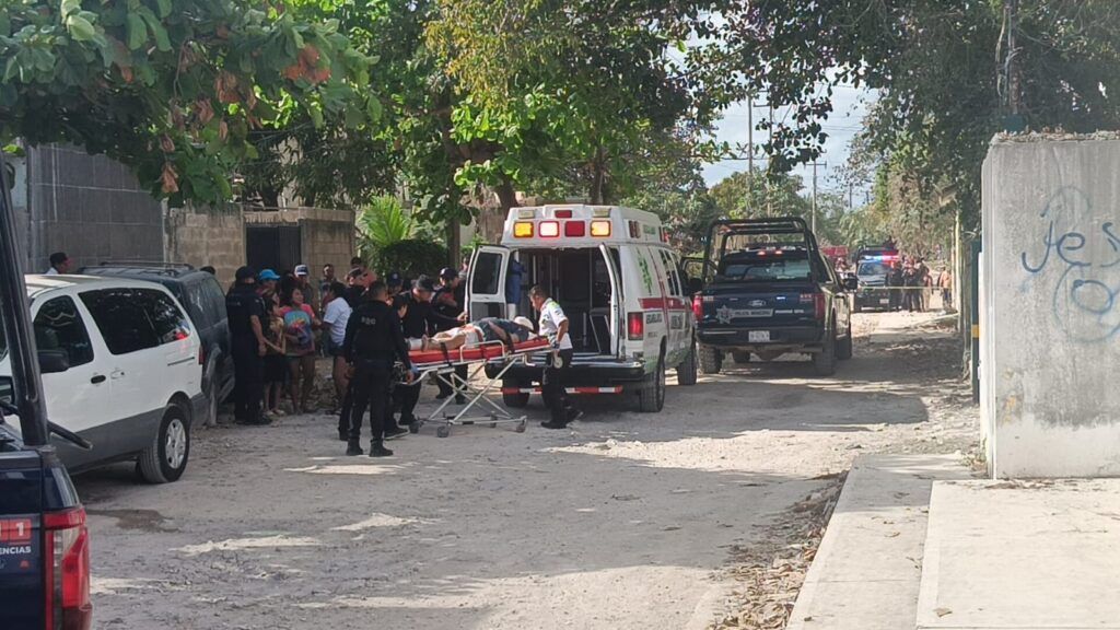 Paramédicos trasladaron al lesionado en una ambulancia de Ángeles Verdes al Hospital General de Cancún, donde permanece bajo atención médica y su estado de salud fue reportado como delicado.