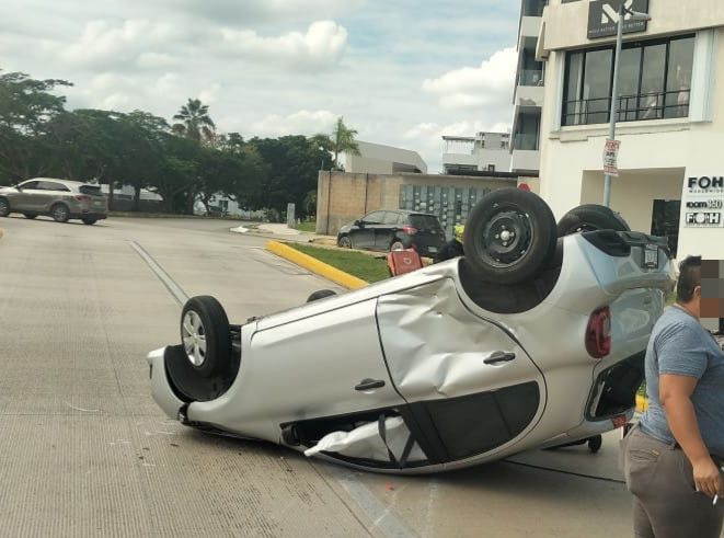 Como consecuencia del choque, el Nissan March terminó volcado sobre la avenida Contoy. No se reportaron personas lesionadas de gravedad.